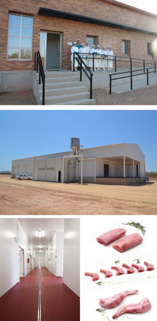 Ubicado a menos de un kilómetro de nuestra granja de conejos se encarga de sacrificar y transformar la carne de conejo. Nuevas y modernas instalaciones diseñadas, equipadas y dimensionadas para ser garantes de un procesado eficaz y seguro. Esta garantía nos permite ofrecer a nuestros clientes canales de conejo y productos transformados de la más exquisita calidad y frescura.