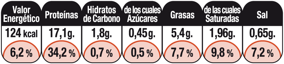 Peso por bandeja: 280 g.